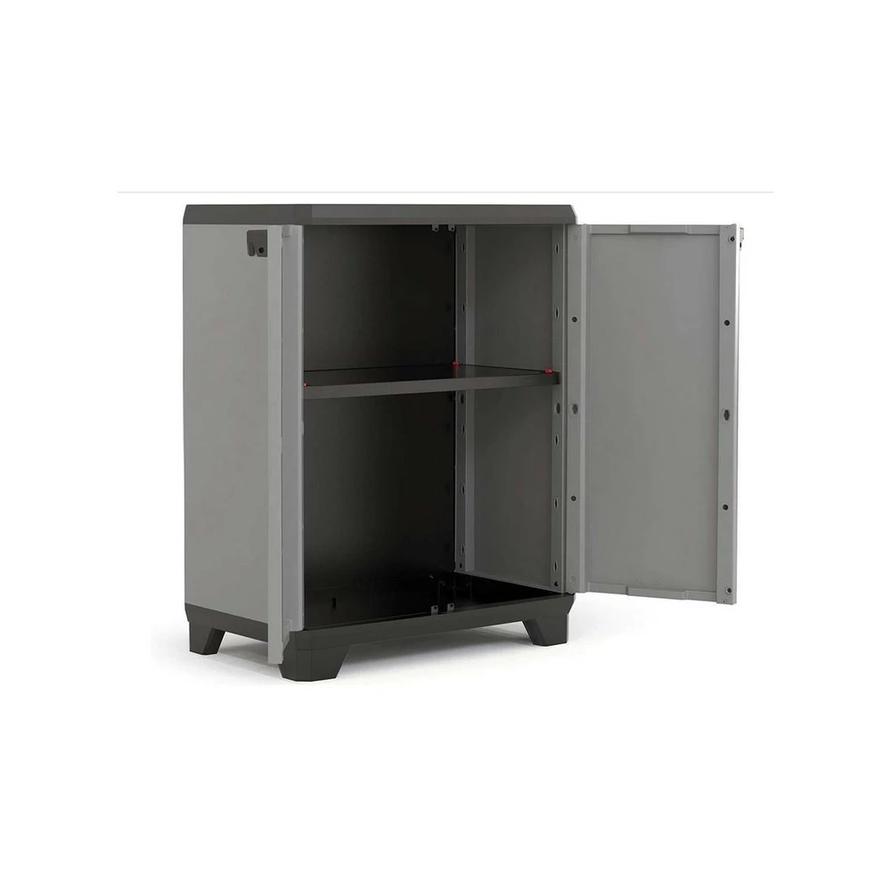 l’armoire basse stilo keter propose un espace adaptable qui peut répondre à différents besoins de stockage. Cette armoire est idéale pour ranger une variété d’objets tels que des outils dans votre garage ou atelier, ou des dossiers importants au bureau.