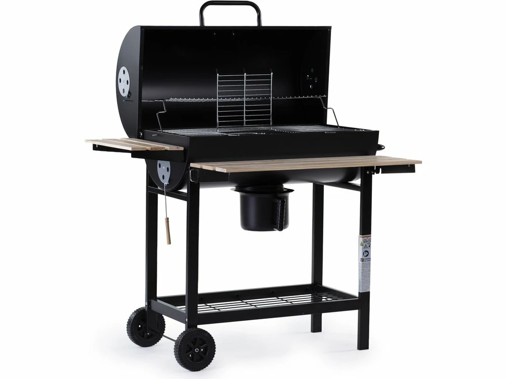 des tablettes de support pour plus de confort, le barbecue bois dispose de deux tablettes : une sur le côté et une autre à l’avant.