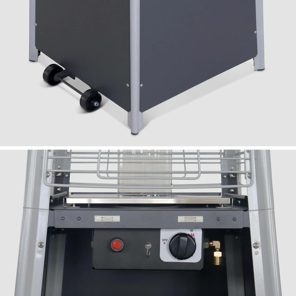 Chauffage D’extérieur – Sweden – Parasol Chauffant Gaz Pyramide. Design. Véritable Flamme. Roulettes + Housse De Protection Incluses