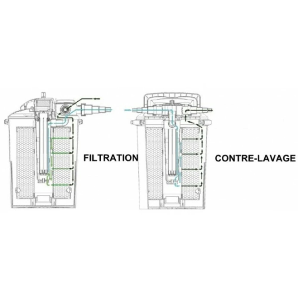le filtre sous pression est doté d’un système de contre-lavage ingénieux, ou la mousse grossière est nettoyée à l’extérieur en commandant une poignée. Cela permet de chasser les saletés hors de la mousse pour un entretien aisé.