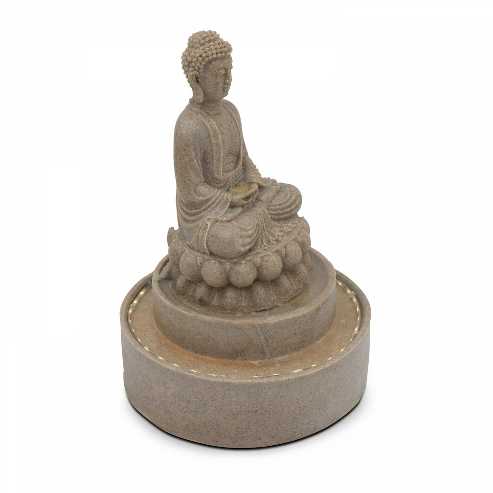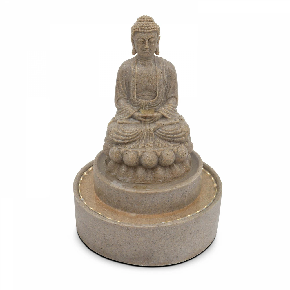 Fontaine Bouddha Assis En Pierre Reconstituée Avec Led