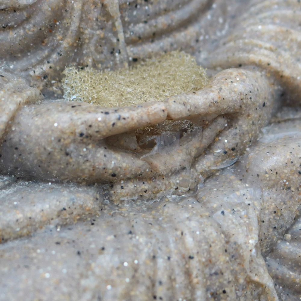 fontaine d’ambiance pour extérieur, représentant bouddha en train de méditer. Bouddha, ici dans la position du lotus, incarne la sagesse et la paix intérieure. La fontaine avec statuette de bouddha propose un style oriental très tendance en déco d’extérieur : installée dans le jardin, sur le balcon ou la terrasse, elle apporte une touche exotique et spirituelle. La fontaine de jardin est conçue pour durer et ne risque pas de s’altérer : elle est fabriquée en polyrésine et fibre de verre, et résiste aux intempéries et rayons uv. Idéale pour le jardin, la terrasse ou le balcon, elle est recouverte de poudre de pierre qui imite le granit. La fontaine de jardin est équipée avec un système de pompe haute qualité dont l’installation se fait en toute simplicité. La led blanche dont elle est dotée fournit un éclairage agréable qui, avec le fond sonore du ruissellement de l’eau, créé une ambiance zen et apaisante. L’eau s’écoule en circuit fermé, la fontaine bouddha pour jardin est livrée avec un câble électrique d’une longueur de 5 m et une notice pour le montage. Les dimensions de la fontaine de jardin sont de 48 cm en largeur et en profondeur, pour une hauteur de 66 cm.