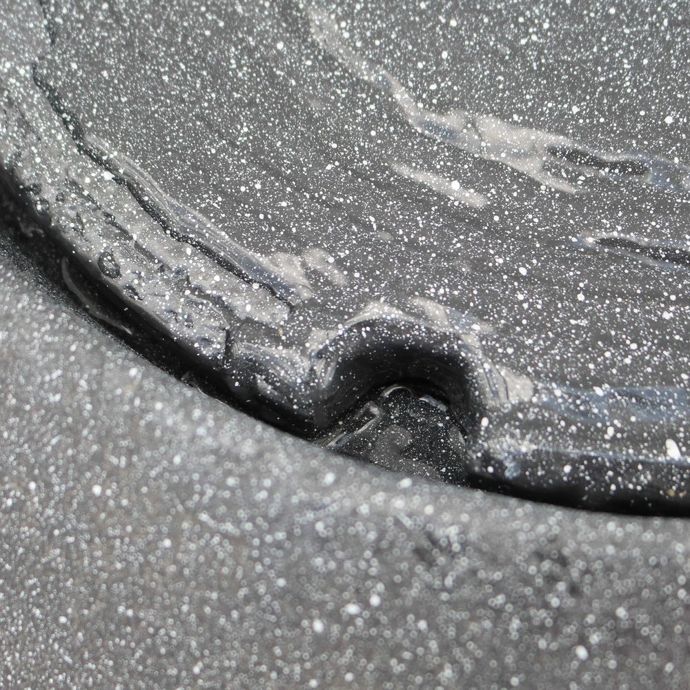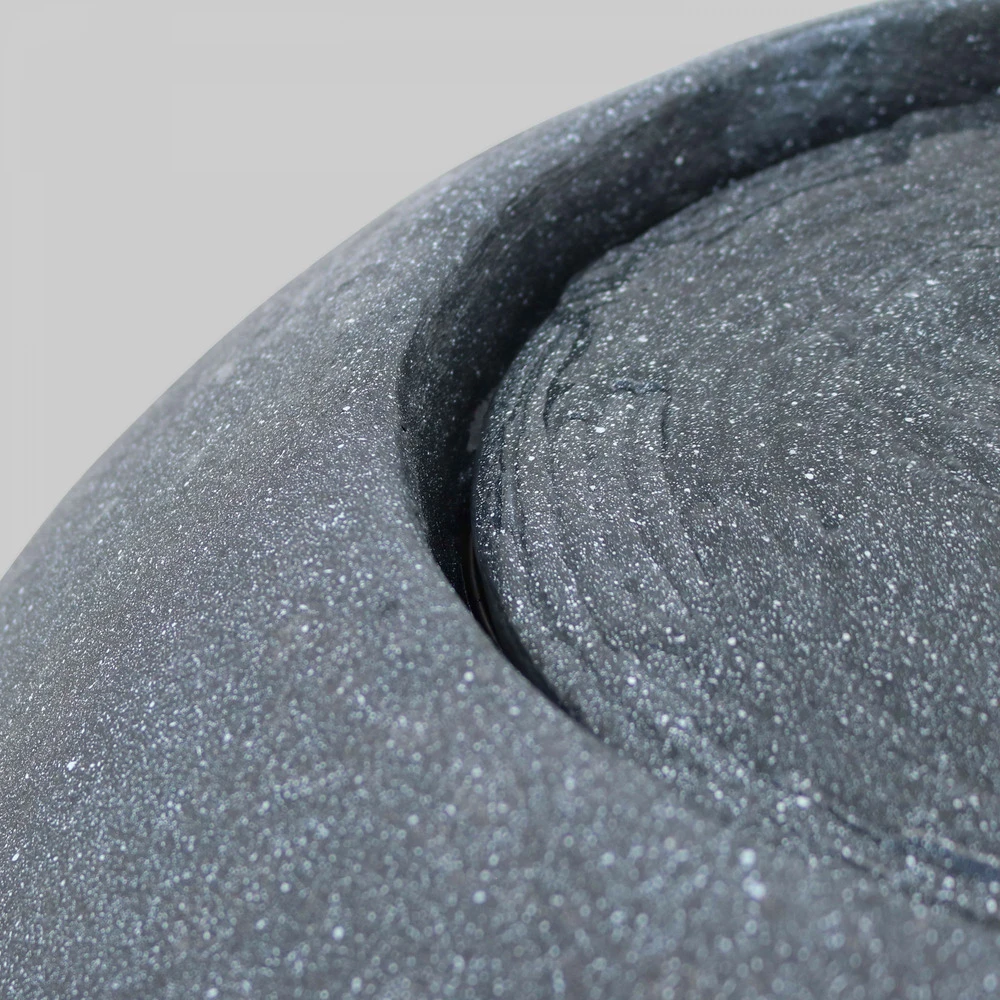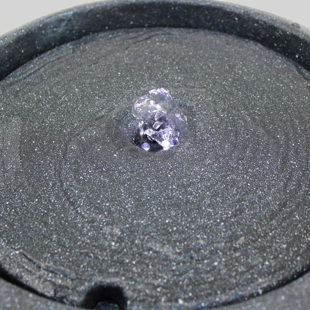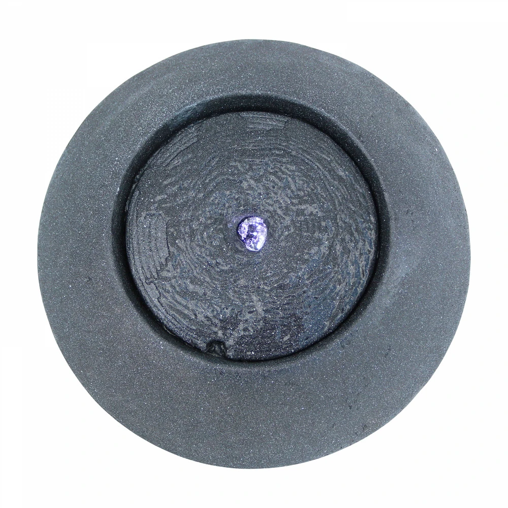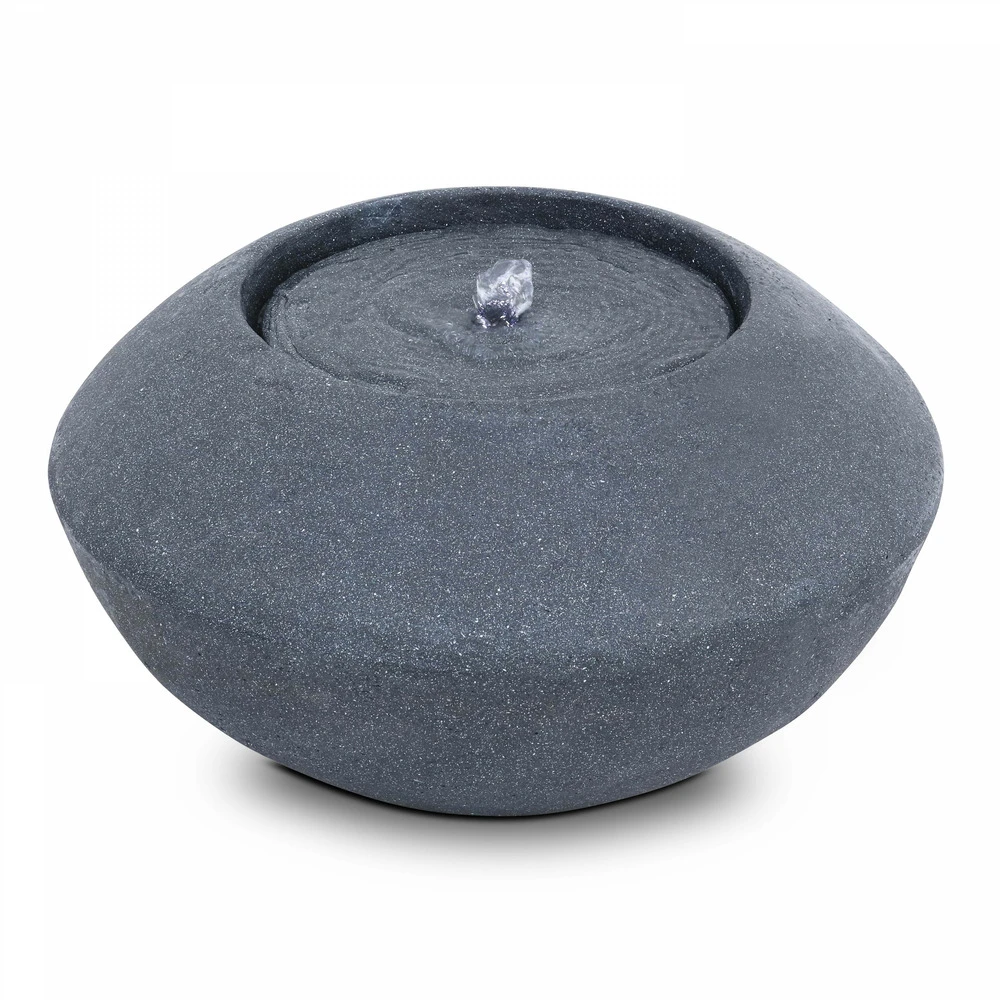 fontaine incurvée de forme ronde pour la décoration extérieure. Légère et facile à installer, la fontaine ronde pour jardin est un accessoire déco et ambiance conçu pour durer en extérieur. La fontaine ronde de jardin est fabriquée en polyrésine et fibre de verre, et recouverte d’une poudre de pierre qui lui donne l’aspect du granit. Elle fonctionne avec un système de pompe simple à mettre en place et en circuit fermé : l’eau ruisselle le long de la fontaine et génère un bruit de fond agréable et apaisant. La led blanche intégrée fournit un éclairage d’ambiance discret qui sublime la fontaine de jardin en soirée. La fontaine incurvée est résistante aux variations de températures, aux intempéries et aux rayons uv : elle peut être installée dans le jardin ou sur la terrasse toute l’année durant sans risque de dégradation. La fontaine ronde imitation granit pèse environ 10 kg et mesure 50 cm de diamètre pour 28 cm de hauteur.