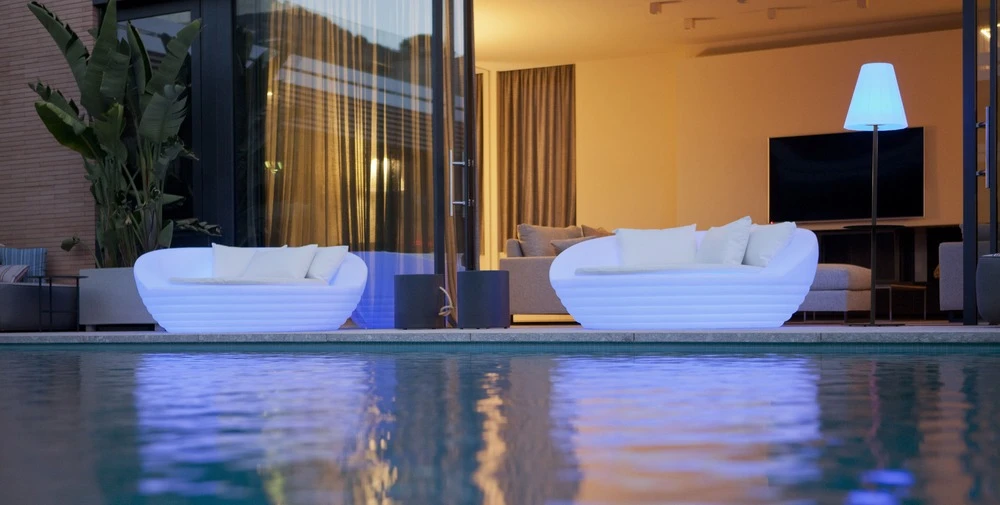 ici la version filaire(alimentation par câble): il vous suffit de brancher votre canapé sur secteur pour pouvoir l’allumer et de la débrancher pour l’éteindre. lumière led – blanc froid.
