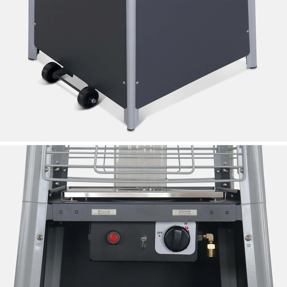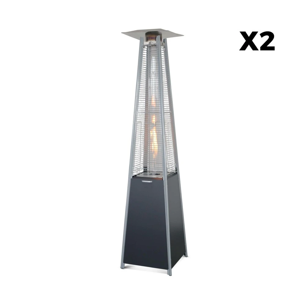 Lot De 2 Chauffages D’extérieur – Sweden – Parasols Chauffants Gaz Pyramide. Design. Véritable Flamme. Roulettes Incluses