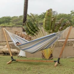Toile De Hamac Rayée – Bleu Turquoise / Gris Clair / écru. 1 Personne. 100% Polycoton. 220x140cm