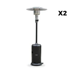 Lot De 2 Parasols Chauffants Gaz Pyramide. Gris Clair. Véritable Flamme. Roulettes Incluses