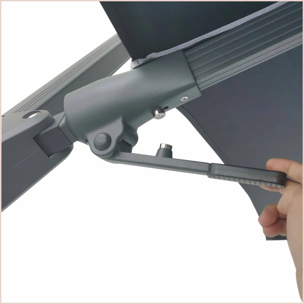 la structure en aluminium ne s’oxyde pas et permet un déploiement fluide, une solidité et une durée de vie supérieure aux parasols classiques du marché.
