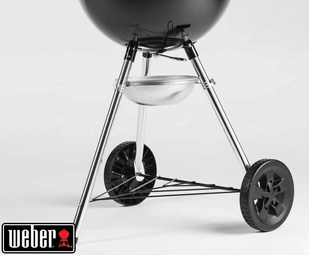 Ce barbecue Weber au charbon de bois Original Kettle E-5710 met à votre disposition tous les éléments et fonctionnalités pour faire de vous le roi ou la reine des après-midis grillades : il dispose ainsi d’une cuve et couvercle en acier émaillé. Intégré au couvercle, le thermomètre garantit une cuisson d’exception. Clapet d’aération en aluminium pour une bonne circulation d’air avec poignée à isolation thermique. Disposé sur des roues en plastique thermodurci qui résistent aux intempéries, pieds surélevés pour une meilleure condition durant les cuissons. Crochets porte-ustensiles intégrés à la poignée de la cuve, système de nettoyage One-Touch pour un nettoyage facile, cendrier plus profond pour éviter que les cendres ne s’envolent. Bol doseur de briquettes qui permet un dosage parfait de celles-ci.